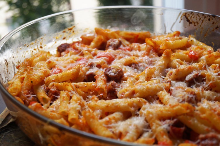 Macarrones con chorizo,plato barato, facilísimo y completo. Sabor de Ajedrez.